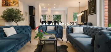 - Dom 6 pokojowy na sprzedażJózefosław, Piaseczno6 pokoi 285 m22 800 000 zł9 824 zł/m2| Pięknie wykończony, przestronny, skrajny dom szeregowy 285m2 na działce 358m2 w Józefosławiu, na obrzeżach Ursynowa. Nowoczesny, z ogromnymi panoramicznymi oknami skierowanymi na soczystą zieleń własnego ogrodu, świeżo