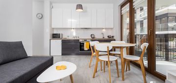- 2 pokojowy apartament z balkonem!Rakowicka, Stare Miasto, Kraków2 pokoje 38 m23 100 zł/mies.81 zł/m2APARTAMENTApartament o powierzchni 38 m² charakteryzuje się wysokim standardem wykończenia i dbałością o detale. Jest w pełni umeblowany i wyposażony, gotowy do zamieszkania od zaraz.Układ pomieszczeń:• przestronny salon z klimatyzacją• nowoczesna