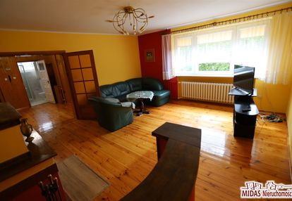 Dom jest funkcjonalny, ocieplony 10 cm styropianem widna kuchnia z meblami w zabudowie sprzęt AGD ,obok spiżarnia. W pokojach na podłogach piękne deski drewniane u góry parkiet bukowy w bardzo dobrym stanie. Pokojach na ścianach malowane gładzie, w kuchni glazura w łazienkach glazura i terakota, w przedpokojach boazeria. Okna drewniane firmy, Wiwatowski; drzwi zewnętrzne antywłamaniowe.Dach kryty styro papą Dodatkowo w cenie pozostaje w kuchni zabudowa meblowa ze sprzętem AGD oraz meble użytkowe. Ogrzewanie własne gazowe.