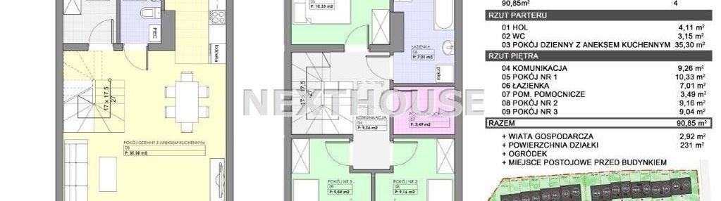 - Powierzchnia: 90,85 m², co zapewnia komfortową przestrzeń dla rodziny.