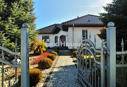 Działka ogrodzona, ogrodzenie od frontu płot kuty malowany proszkowo z otwieraną elektrycznie bramą dwuskrzydłową.