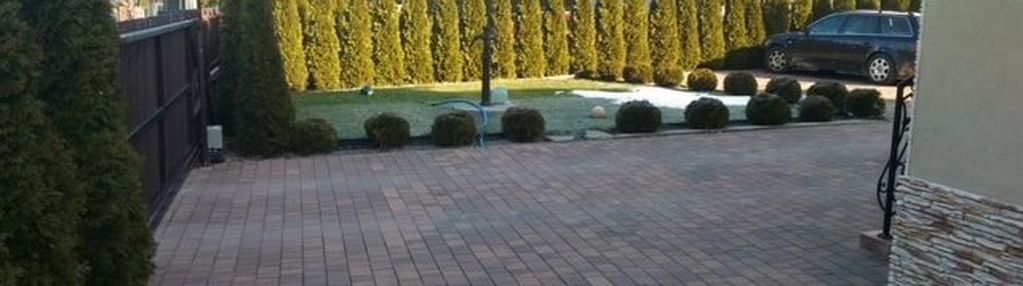 Dwie niezależne bramy wjazdowe na pilota , z możliwością parkowania na terenie posesji - podjazd pokryty kostka brukową .