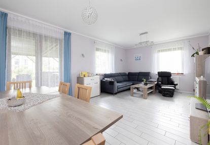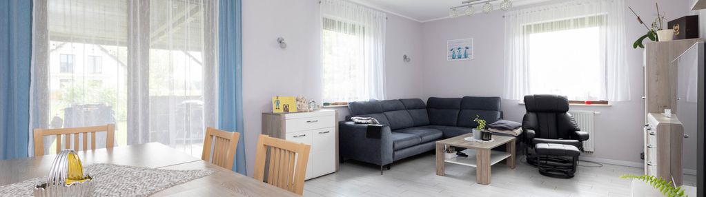 - Przestronny, jasny salon z wyjściem na taras i ogród