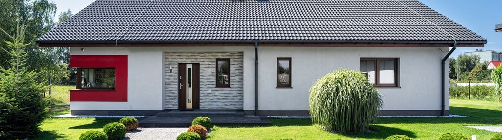 Dom parterowy, zaprojektowany z myślą o funkcjonalności i komforcie mieszkańców. Z zewnątrz przyciąga uwagę elegancką, nowoczesną bryłą i starannie dobranymi materiałami wykończeniowymi, które harmonijnie komponują się z zielonym otoczeniem.