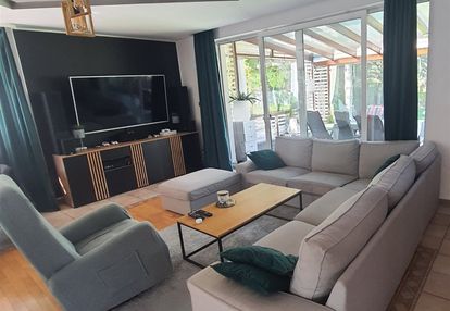 Dom został wykończony z wysokiej klasy materiałów, z dbałością o każdy detal. Komfort życia zapewnia klimatyzacja, a ciepło w chłodniejsze dni - nowoczesne ogrzewanie olejowe oraz kominek z rozprowadzeniem ciepła, który ogrzewa także sypialnie na piętrze.