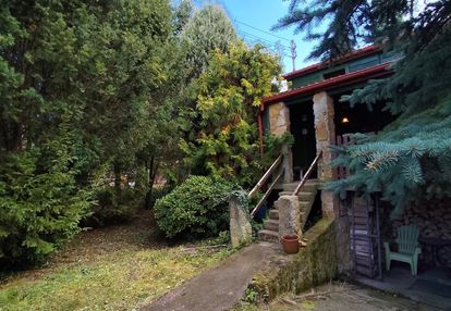 Dom posiada przestronny, klimatyczny salon z kominkiem, którego kamienna obudowa nadaje wnętrzu przytulny, góralsko-letniskowy charakter. Drewniane sufity i podłogi tworzą wyjątkowy nastrój, a liczne okna zapewniają naturalne oświetlenie oraz widok na otaczającą zieleń.