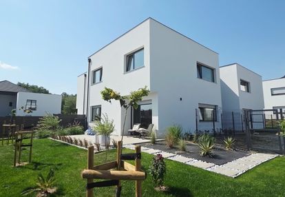 WOMBAT NIERUCHOMOŚCI oferuje na sprzedaż dom piętrowy ze strychem w zabudowie bliźniaczej, o nowoczesnej architekturze i funkcjonalnym układzie pomieszczeń.