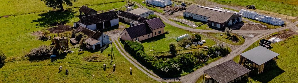To kompletna nieruchomość - dom mieszkalny, nowa obora, magazyny, garaże, wiaty oraz baza paszowa.