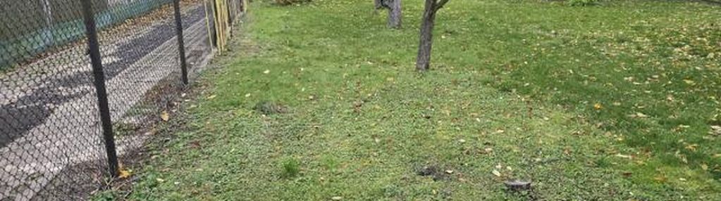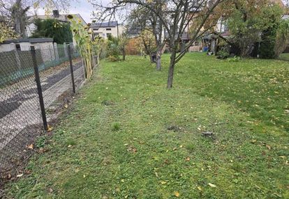 Działka jest płaska, prosta, ogrodzona. Na działce kilka drzew owocowych.