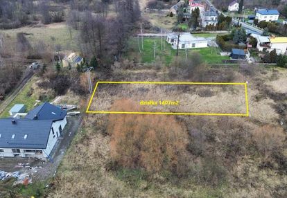 Działka o powierzchni 1407m2, wymiarach 22,7m x 62m.
