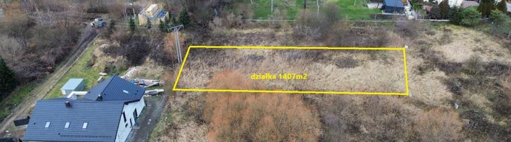 Działka o powierzchni 1407m2, wymiarach 22,7m x 62m.