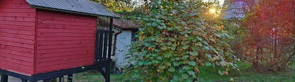Tajemniczy ogród położony w bardzo spokojnym miejscu, otoczony drzewami. Na działce znajduje się budynek gospodarczy z możliwością adaptacji na część mieszkalną, na którą składają się pokój i aneks kuchenny.