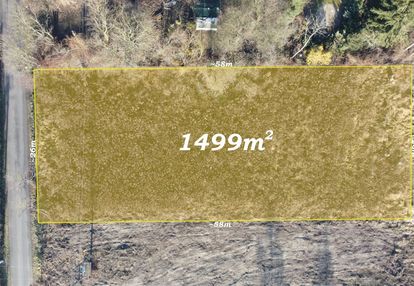 Działka o powierzchni 1499m 2 w kształcie prostokąta o wymiarach 28x57,5 m.