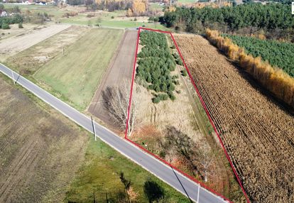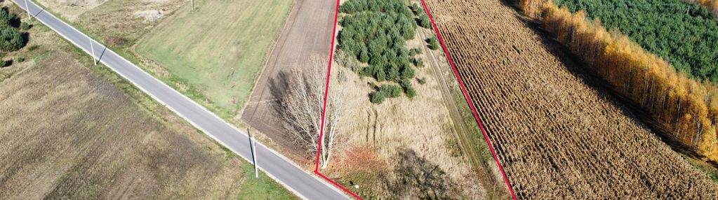 Działka pomiędzy dwiema drogami asfaltowymi.