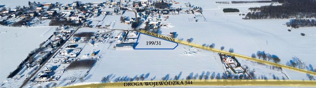 Działka nr 199/31 o powierzchni 7635 m² położona jest w Pierławkach (gmina Działdowo). Ma 134 metry frontu przy drodze gminnej - to ogromny atut przy planowaniu zjazdu, placu manewrowego i ekspozycji firmy.
