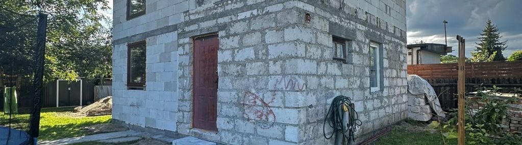 Na działce znajduje się murowany domek po rozpoczętej rozbudowie w 2025 roku: