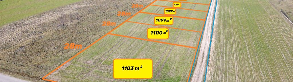 Oferujemy kompleks 9 działek o powierzchni ok. 1100 m² każda, w atrakcyjnej cenie 70 zł/m².