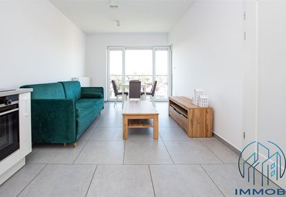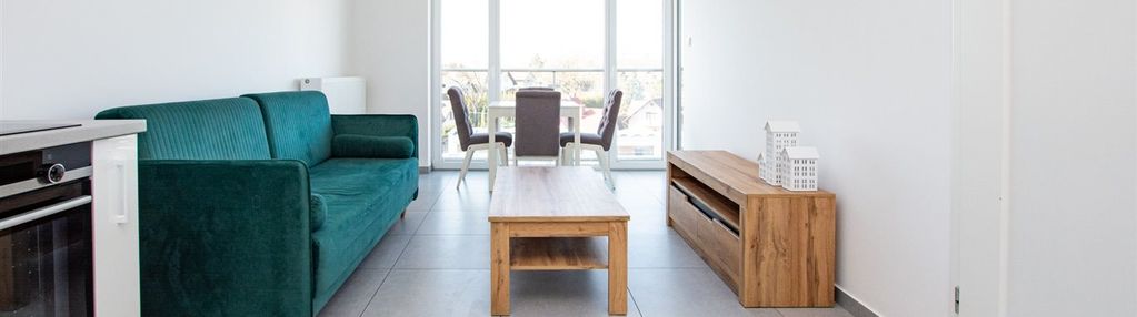 salon z aneksem kuchennym oraz wyjściem na balkon