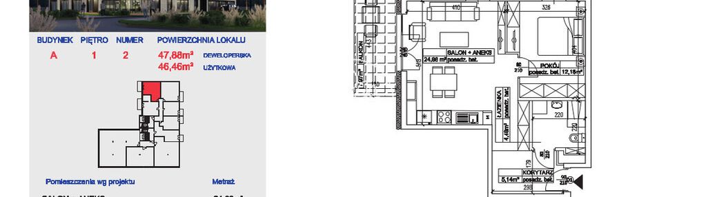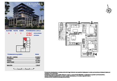 Mieszkanie na sprzedaż 2 pokoje Bydgoszcz Bartodzieje, 46,46 m2, 1 piętro