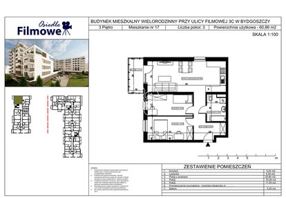 Mieszkanie na sprzedaż 3 pokoje Bydgoszcz Kapuściska, 61,86 m2, 3 piętro