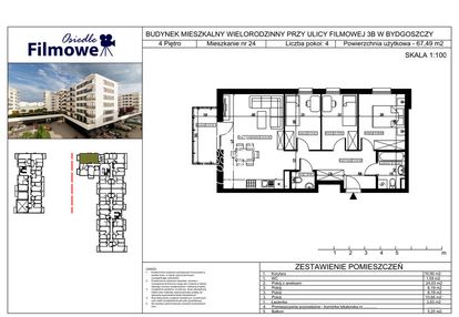 Mieszkanie na sprzedaż 4 pokoje Bydgoszcz Kapuściska, 67,49 m2, 4 piętro