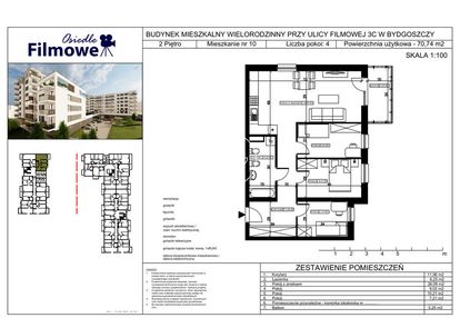 Mieszkanie na sprzedaż 4 pokoje Bydgoszcz Kapuściska, 70,74 m2, 2 piętro