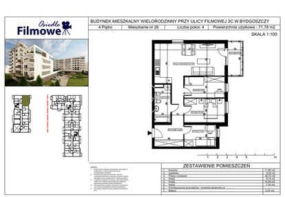 Mieszkanie na sprzedaż 4 pokoje Bydgoszcz Kapuściska, 71,78 m2, 4 piętro