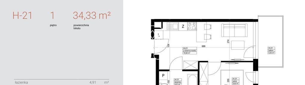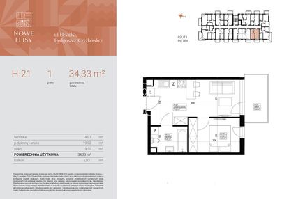 Mieszkanie na sprzedaż 2 pokoje Bydgoszcz Czyżkówko, 34,33 m2, 1 piętro