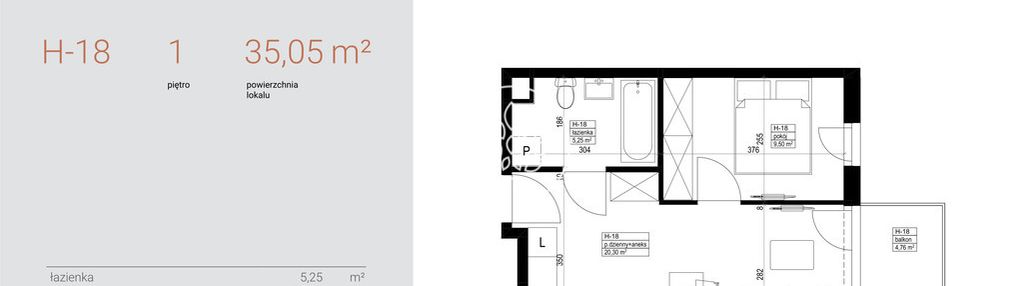Opis nieruchomości o powierzchni 35,05 m2