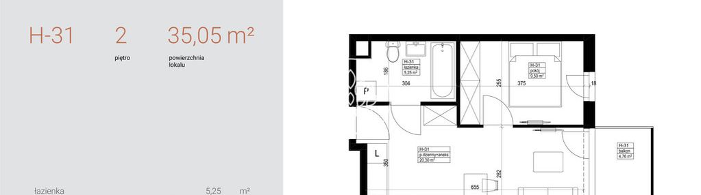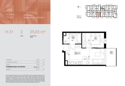 Mieszkanie na sprzedaż 2 pokoje Bydgoszcz Czyżkówko, 35,05 m2, 2 piętro