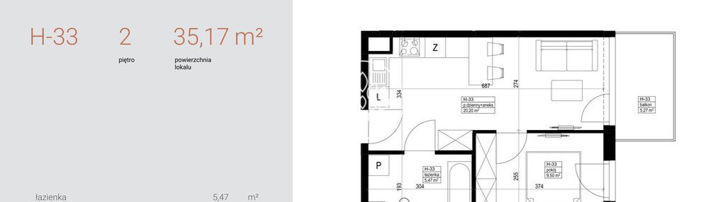 Opis nieruchomości o powierzchni 35,17 m2