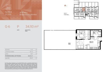 Mieszkanie na sprzedaż 2 pokoje Bydgoszcz Czyżkówko, 34,93 m2, parter