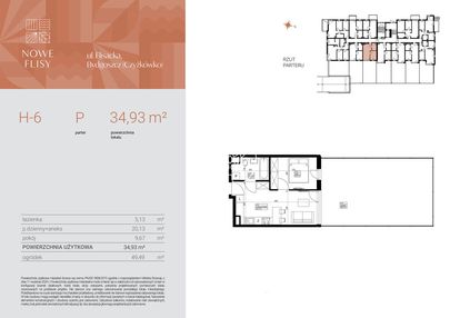 Mieszkanie na sprzedaż 2 pokoje Bydgoszcz Czyżkówko, 34,93 m2, parter