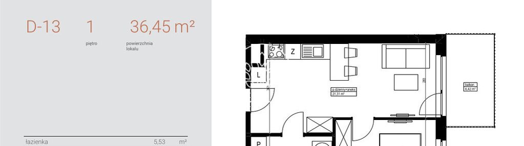 Mieszkanie na sprzedaż 2 pokoje Bydgoszcz Czyżkówko, 36,23 m2, 1 piętro