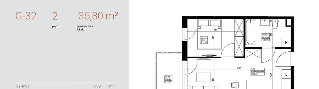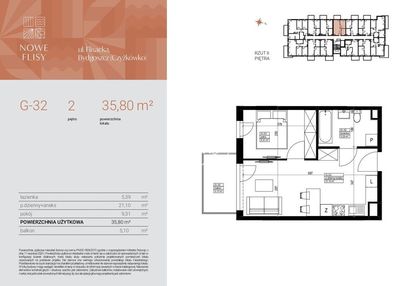 Opis nieruchomości o powierzchni 35,80 m2