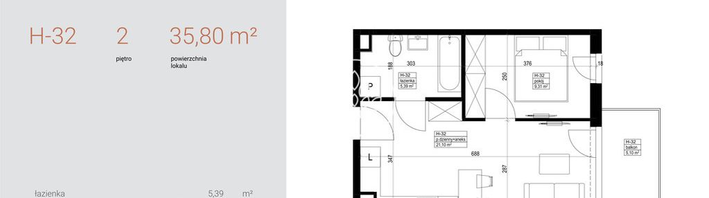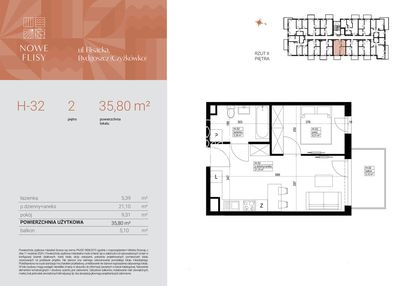 Opis nieruchomości o powierzchni 35,80 m2