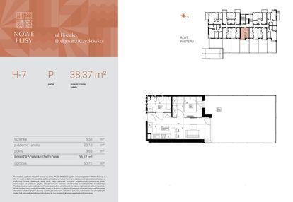 Mieszkanie na sprzedaż 2 pokoje Bydgoszcz Czyżkówko, 38,37 m2, parter