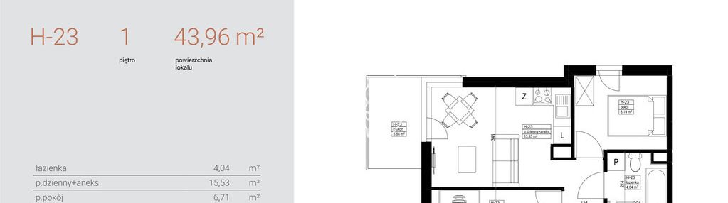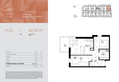 Opis nieruchomości o powierzchni 43,96 m2