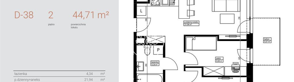 Opis nieruchomości o powierzchni 44,40 m2