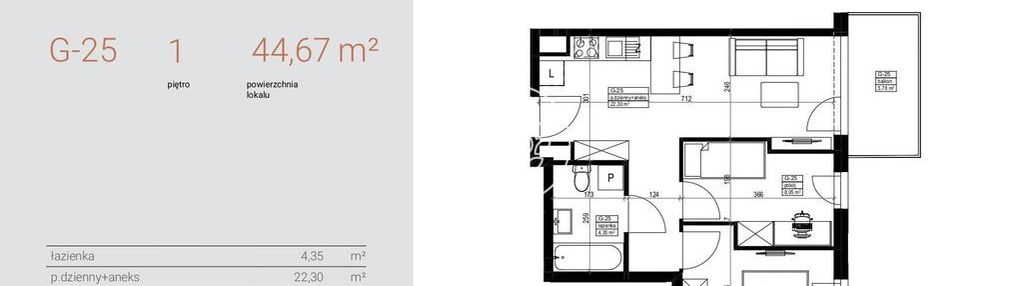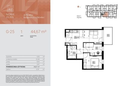 Mieszkanie na sprzedaż 3 pokoje Bydgoszcz Czyżkówko, 44,67 m2, 1 piętro