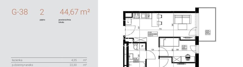 Opis nieruchomości o powierzchni 44,67 m2