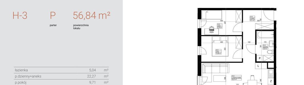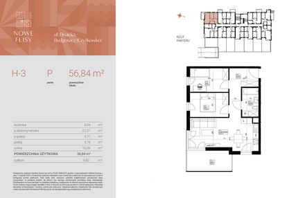 Mieszkanie na sprzedaż 3 pokoje Bydgoszcz Czyżkówko, 56,84 m2, parter