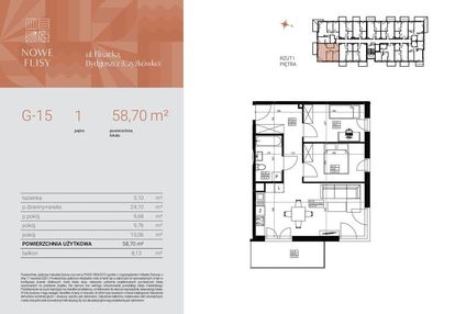 Opis nieruchomości o powierzchni 58,70 m2