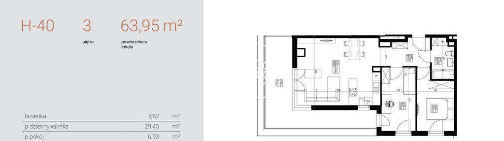 Mieszkanie na sprzedaż 3 pokoje Bydgoszcz Czyżkówko, 63,95 m2, 3 piętro