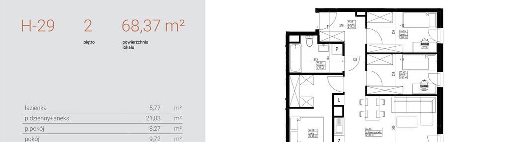 Opis nieruchomości o powierzchni 68,37 m2