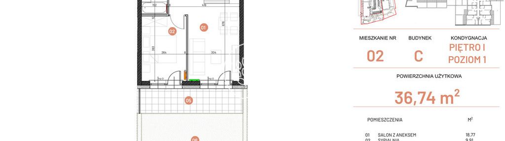 Opis nieruchomości o powierzchni 36,74 m2