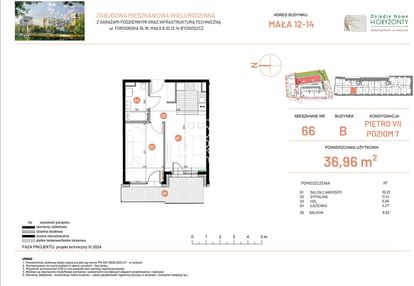Mieszkanie na sprzedaż 2 pokoje Bydgoszcz Bartodzieje, 36,96 m2, 7 piętro