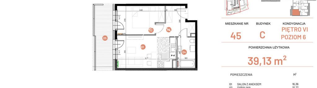Mieszkanie na sprzedaż 2 pokoje Bydgoszcz Bartodzieje, 39,13 m2, 6 piętro