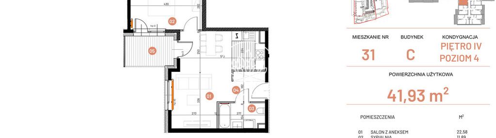 Mieszkanie na sprzedaż 2 pokoje Bydgoszcz Bartodzieje, 41,93 m2, 4 piętro
