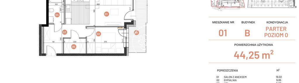 Opis nieruchomości o powierzchni 44,25 m2